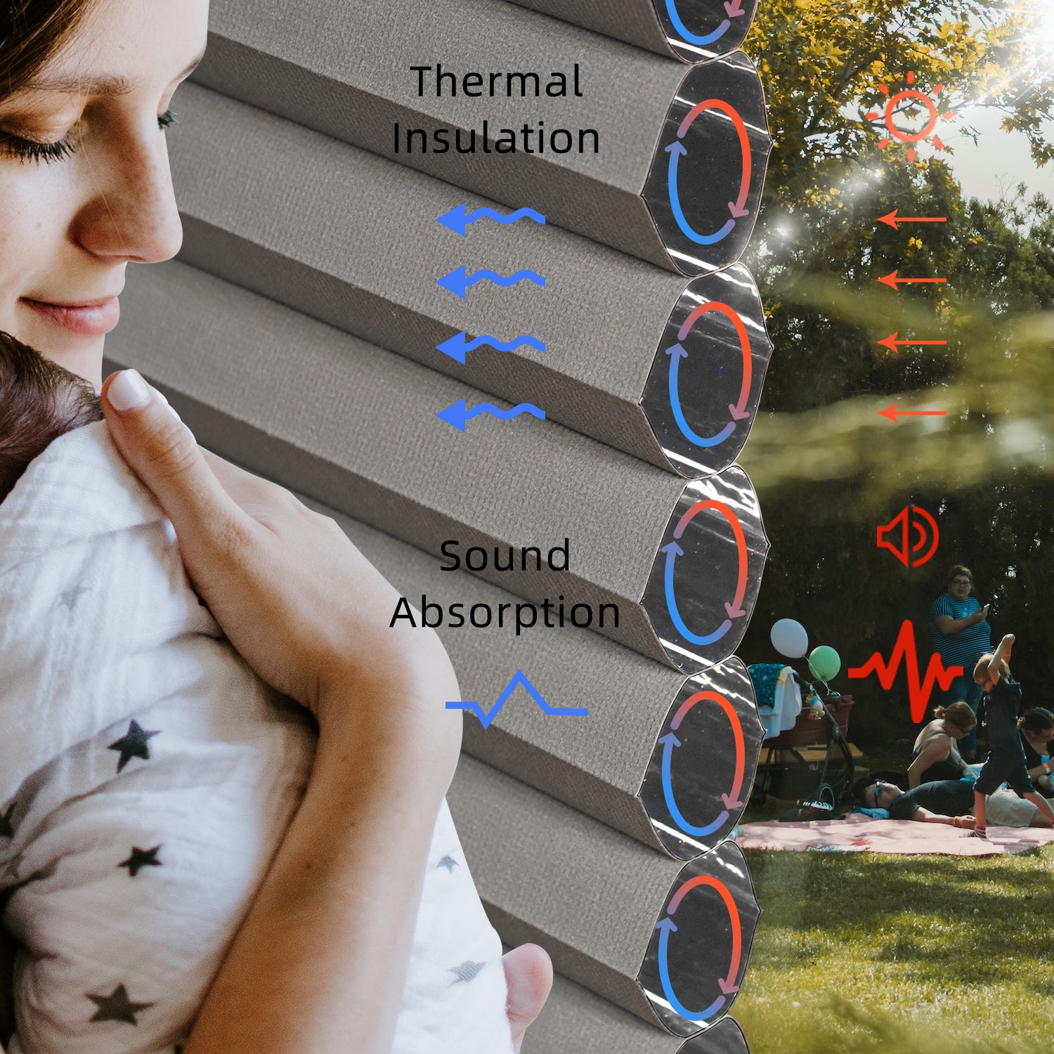 Nowa stands out with its 1.77" wide honeycomb construction, offering superior heat insulation, sound absorption, and heightened energy efficiency.