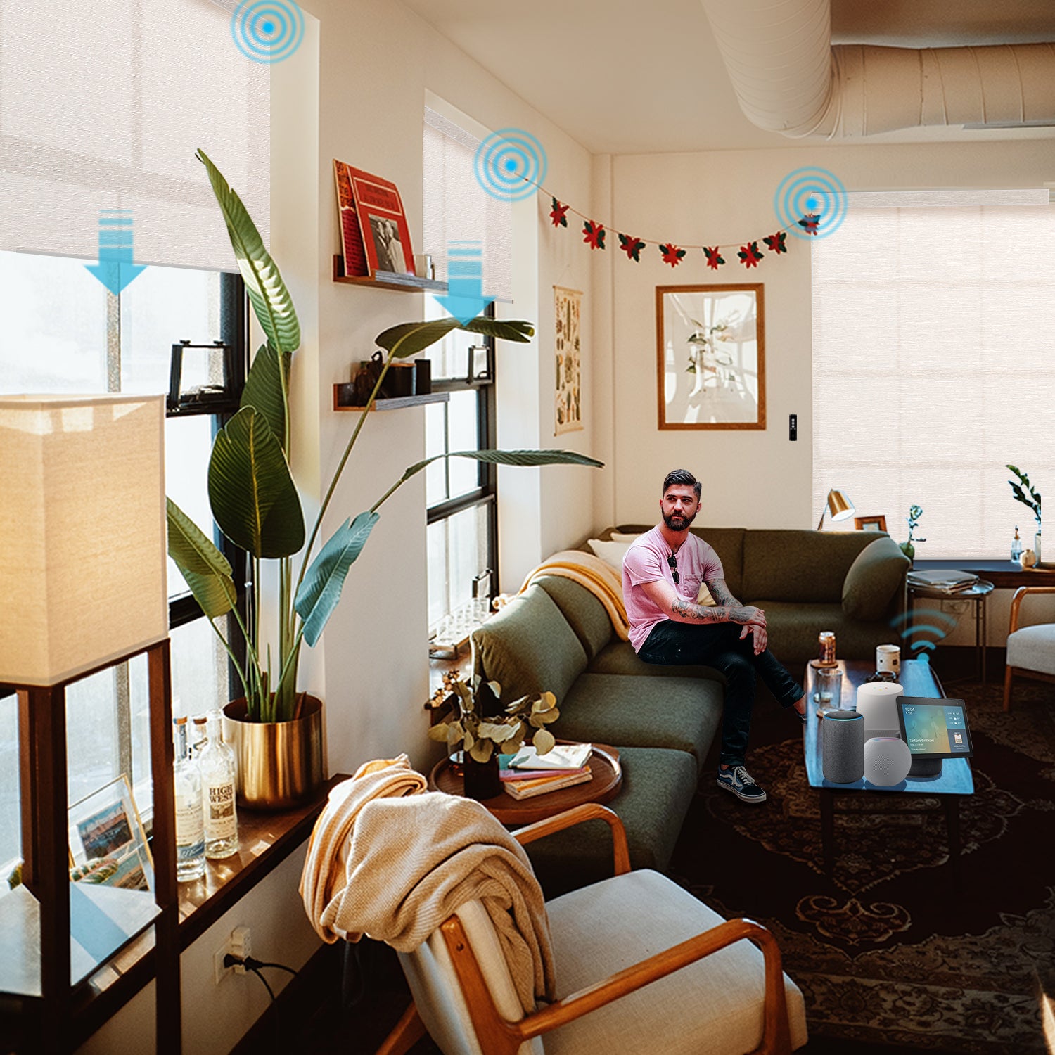 With smart devices and hubs, you can ensure your home remains just as you like it, even when you're away, thanks to pre-set arrangements. Our versatile range of motors allows for integration with numerous apps, including Apple HomeKit, Amazon Alexa, Samsung SmartThings, Google Assistant, and more, giving you the freedom to control your shades through your preferred platform.