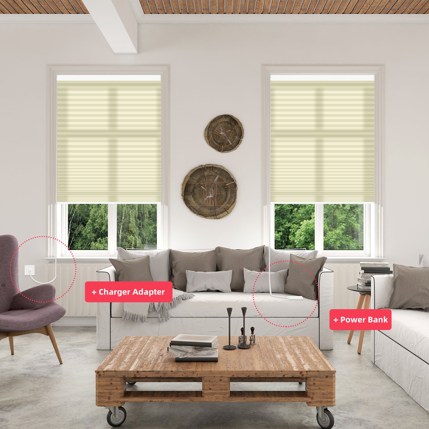 - Customers in need of a charging cable can place order directly. Please note that this product is only suitable for interior shades and does not include outdoor shades.